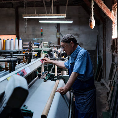 ごみの出ない循環型モノづくりの一環として、つくられた糸・生地を使用した製品になります。